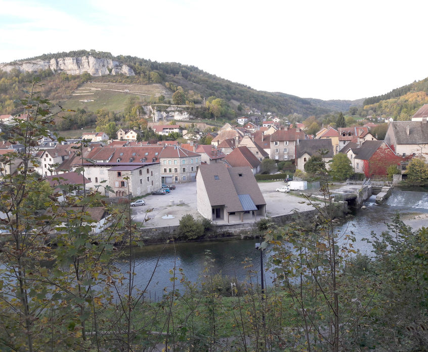 Les ouvertures ont été pensées pour cadrer le paysage et respectent une décomposition verticale de rigueur dans le Doubs.